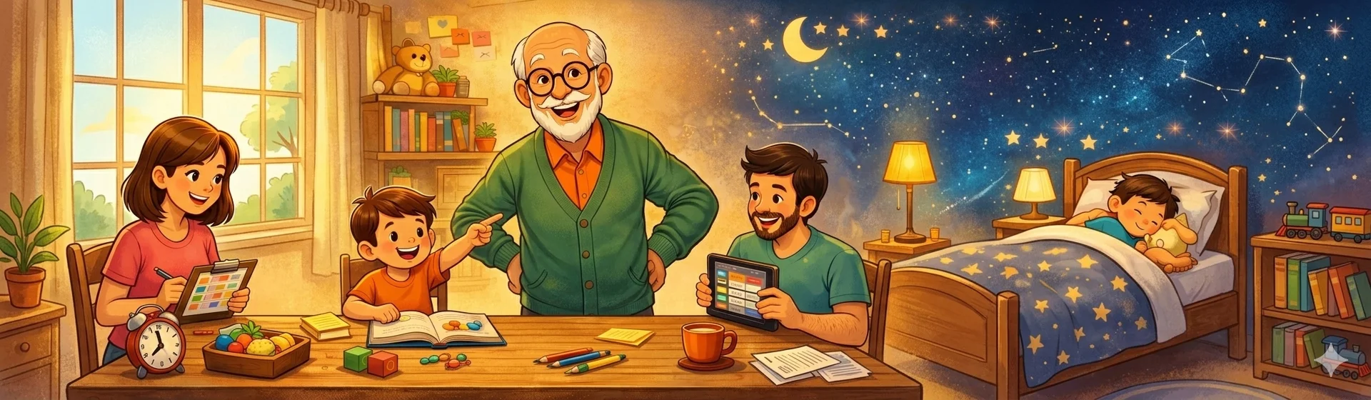 تعطيك تسلسلًا يوميًا عمليًا: أكل، نشاط، راحة، وتهدئة قبل النوم، مع مساحة مرنة للتعديل حسب يوم العائلة.