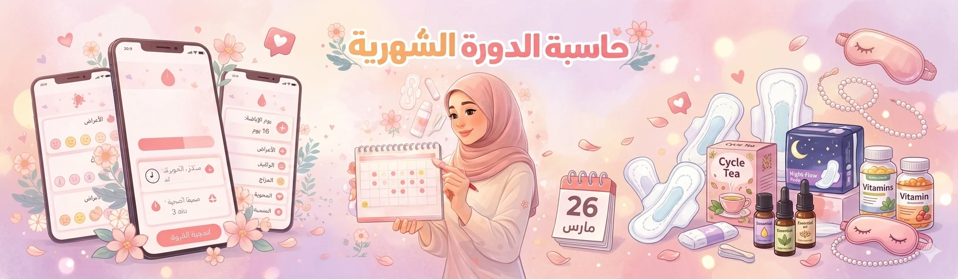 احسبي موعد الدورة القادمة، وتابعي اليوم الحالي من دورتك، واعرفي التواريخ المتوقعة القادمة في أداة عربية بسيطة وواضحة.