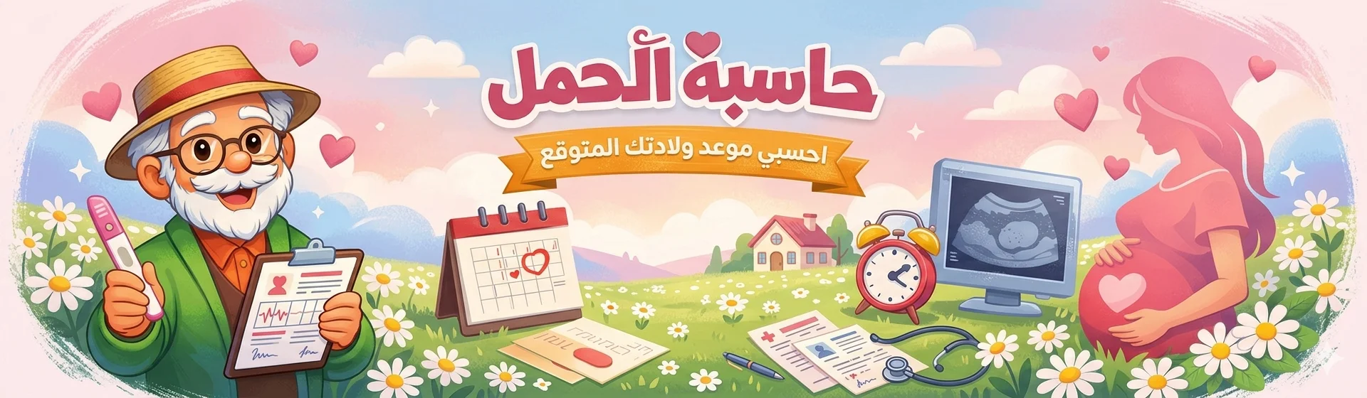 احسبي عمر الحمل وموعد الولادة المتوقع بسهولة، من آخر دورة أو من تاريخ الإخصاب التقريبي، في أداة عربية بسيطة ولطيفة.